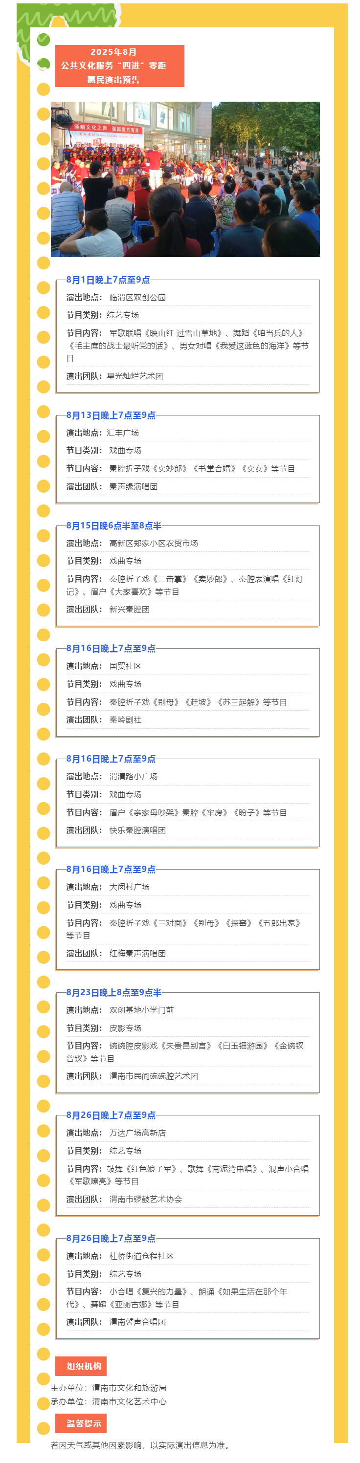 【活动预告】2025年8月公共文化服务“四进”零距惠民演出预告