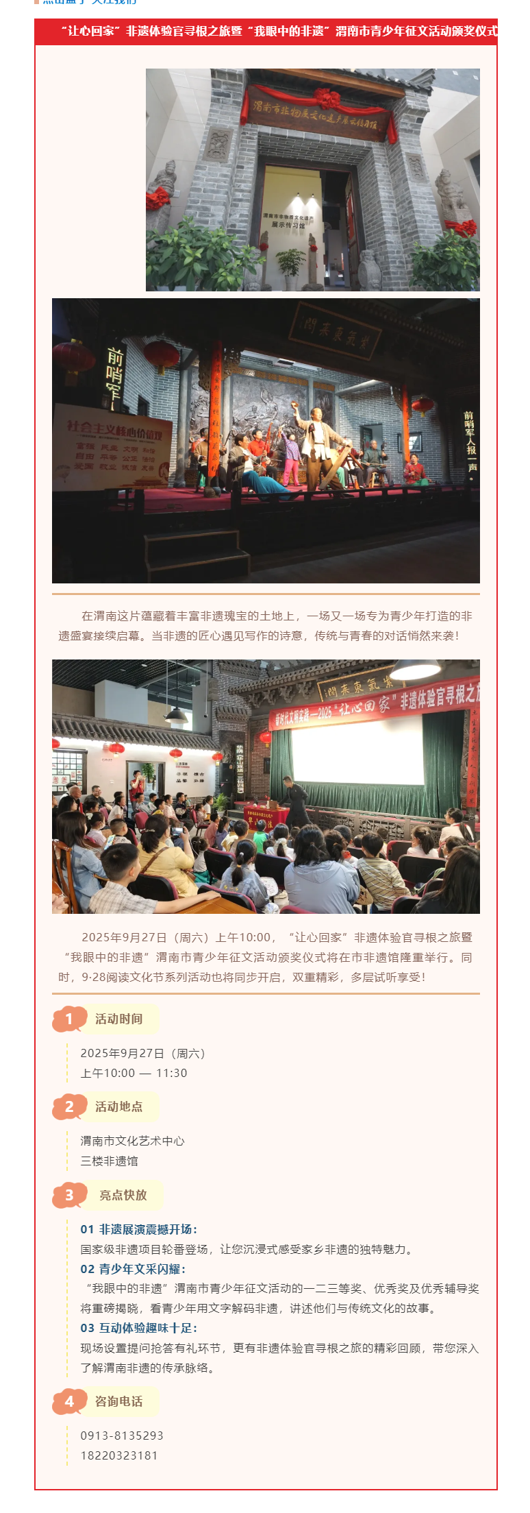 让心回家·非遗寻根:渭南青少年征文颁奖盛典邀您共享文化之旅