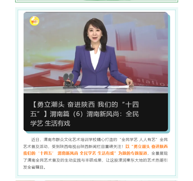 省台聚焦渭南 “全民学艺 人人有艺” 全民艺术普及绽放文化惠民新风尚
