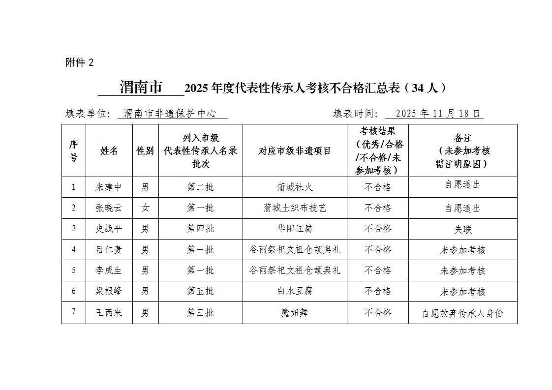 2.渭南市2025年度代表性传承人考核不合格汇总表