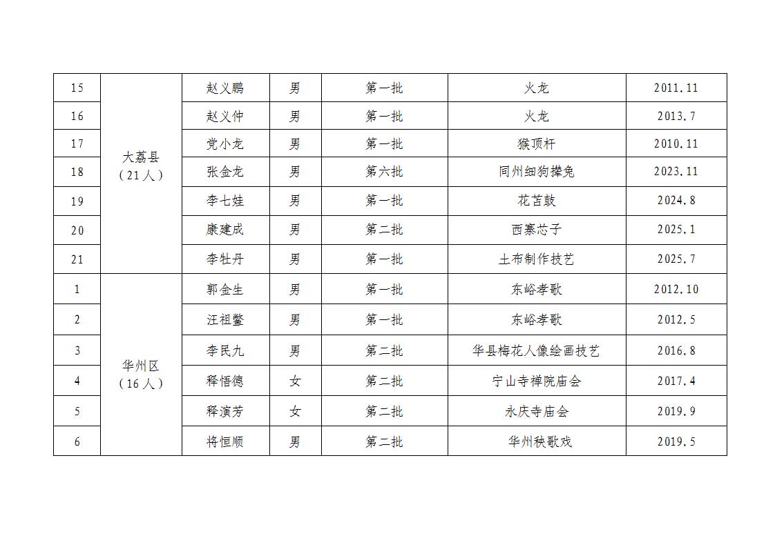 3.渭南市2025年度代表性传承人去世汇总表