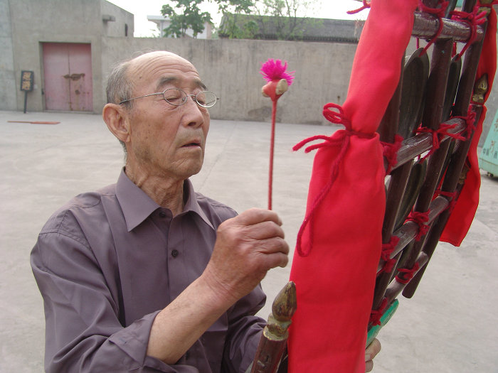 韩城“谏公”鼓吹乐是韩城市西庄镇杨村王姓家族祭祀祖先的音乐。清顺治年间王姓家族春节祭拜祖先,即用云锣、海牛等乐器演奏此曲,以示不忘祖恩。康熙年间,天下安定,王姓人丁兴旺,生活富裕,便重新购置了铙、钹、云锣等乐器,并将曲谱命名曰“谏公(即尊长之意)”,于每年春节、清明节演奏,流传至今。“谏公”鼓吹乐演奏形式独特,有固定的表演程序,分别为:一金钟破晓(打钟五响,示意天快明了,催人早起),二海牛净宫(海牛(海螺)吹五响,赶走牛鬼蛇神,清净祠庙),三道士清堂(清扫祠庙,清除神像牌位尘土,以备长者祭拜),四云锣祭拜(音色不同的云锣按曲调顺序敲响,祭拜人双手端贡品,祭献跪拜),五古乐震宇(跪拜祭献完毕,祭拜的长者出祠庙,此时要大奏鼓乐,振奋人心)。“谏公”鼓吹乐的演奏形式有独奏有合奏。古腔古调,优雅动听。演奏鼓阵前后执事的摆设庄严肃穆,服装颜色多样,演奏所用的铜器中,铙钹每副重五斤半,锣、镲相对较小,“云锣”一副10个,音色各不相同。韩城“谏公”鼓吹乐2009年被列入第二批陕西省非物质文化遗产名录。