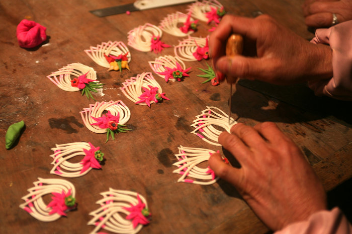 澄城面花是当地民间的一种手工艺术品,也是当地民众年节往来馈赠亲友的传统礼品。面花的主料小麦面粉,辅料有各种豆类、核桃、红枣、鸡蛋等。由农妇通过和面、加色,运用捏、修、剪等手法,做成人物、动物等多种造型,上笼蒸制后再经过插花等工序制作而成。澄城面花的造型分为三大类:一是简洁生动、类似浮雕的贴花馍;二是大胆夸张、造型独特的变体馍;三是绚丽多彩、富丽堂皇的插花馍。澄城面花最有特色的是丧葬礼馍,民间常说的白事,以白示孝,但蒸的花馍却是花花绿绿,色彩鲜艳,借以表达对逝者灵魂升天的祈祷,面花上的戏剧人物也有陪葬的意思,反映了独特的民间信仰。