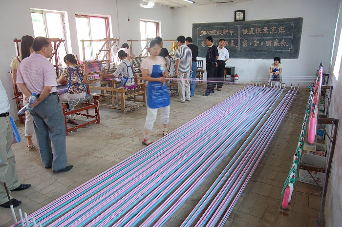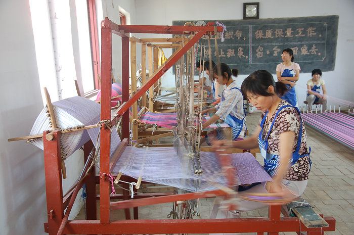 土布制作技艺是一项过去农家自用的棉织品制作技术,从宋末元初棉花传入陕西算起,已有700多年的历史。大荔县是著名的优质棉生产基地。大荔土布以纯棉为原料,用原始纺车纺线,木织布机一梭一梭精心编织而成。其制作过程大体分为七个步骤:将棉花脱籽弹松、搓捻子、纺穗子、拐线、浆线、结线、机织等,所用的工具有:弹花机、竹棍、纺车、织布机等。传统的土布花式有:豆腐块、狼尾巴、板凳腿、六朵梅、九朵梅、十二朵梅等。至今仍有广阔市场的产品主要是床单、门帘、衬衣等。土布属纯棉布,没有静电,对人体无任何损害,穿在身上干爽舒适,铺在床上平整无折。土布制作技艺对研究丝绸、麻布、葛布等历史上早期的纺织品有着重要的参考价值,也具有一定的产业开发潜力。土布制作技艺2008年被列入第一批渭南市非物质文化遗产名录。