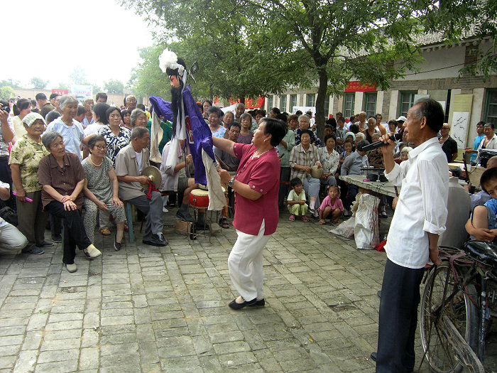 大荔木偶戏,乡间也叫“肘娃娃”,已有400多年历史,是用撑杆木偶代替真人表演、并由艺人同步演唱的演出形式。唱腔和剧目一般直接从秦腔导入。主要分布于大荔县苏村乡。大荔肘木偶的基本内容:一是用桐木雕刻化妆戏剧人物脸谱做偶头,用硬纸裱糊胸腔。由身子、两臂组成人物框架,穿戴上戏剧服装,成为一个个戏曲人物偶像。木偶能完成眨眼、张嘴、摇头、转身、拿物等动作。二是它在舞台演出时,配合灯火、布景、音乐、演唱成为一种人演大戏的浓缩体进行戏曲表演。三是如果有特殊效果设施,可达到人唱大戏而不能及的艺术效果,如腾空、驾云、隐身等,变化莫测。大荔木偶戏生旦净末丑行当齐全,演出的本戏有《宝莲灯》、《双罗衫》、《牧羊卷》、《大报仇》、《配凡》、《黑叮本》等,折子戏有20多个。肘木偶集戏曲艺术和操作技艺于一体,为关中群众喜闻乐见。大荔肘木偶2010年被列入第二批渭南市非物质文化遗产名录。