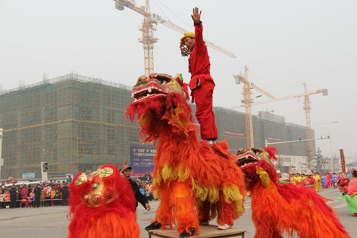 大同舞狮是临渭区官路镇大同村同姓家族历经十三代传承至今的社火绝技。以文狮表演为主,除上天梯等个别表演环节外,整体上造型朴实,动作舒缓。表演时,在焰火的烘托和锣鼓鞭炮的喧闹声中,活灵活现的狮子摇头摆尾,迈着灵动的步伐,闪亮登场。整只狮子由两人分饰狮头狮尾,伴随驯狮者手中的绣球,可以完成打滚、舔毛、伸腰、直立、挠痒、吐灯、过人等30多种技巧动作,展现出狮子的活泼可爱和平易近人。渭南舞狮2010年被列入第二批渭南市非物质文化遗产名录。