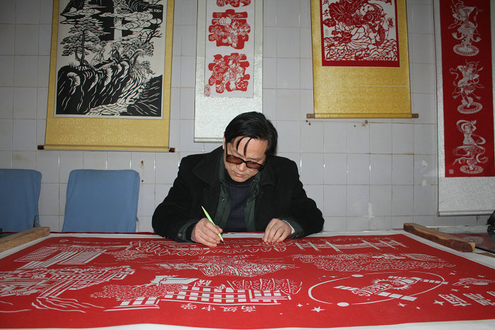 何刘剪纸出于临渭区三张镇油张村。从清朝末年至今,历经四代传人,百年历史。何刘剪纸的特点是多用剪刀、少用刻刀,构图简单、造型小巧、线条流畅,富于趣味性和装饰性,带有浓重的乡土气息。它的代表作品涵盖人物、动物、花草、文字、山水等。尤其人物剪纸在发展过程中吸收了皮影的雕刻技法,人像鼻尖挺拔、服饰花纹多样,具有很高的审美价值。何刘剪纸常见的图案分为对称和不对称两种类型。对称的有两边、四边、六边、八边对称。不对称类在形象上删繁就简,适当夸张,布局上力求丰满,注重形象间的连接,以人物、动物、山水剪纸使用多。何刘剪纸主要用作春节窗花、元旦门签、元宵灯花、婚俗喜花、丧俗祭纸以及各类民俗装饰。何刘剪纸2010年被列入第二批渭南市非物质文化遗产名录。