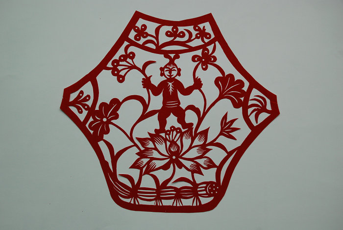 华县剪纸已有一千多年的历史。剪纸过去在华县的运用十分广泛。过年新糊窗纸,就要贴上窗花;门顶、灯花是元宵节必不可少的装饰。喜花用于布置新房,寿花用于祈福贺寿。此外还有丧花、墙花、顶棚花等。剪纸的内容讲究寓意吉祥,娃娃、葫芦、莲花、家禽家畜、瓜果虫鱼都是常见的素材。华县剪纸的工具以剪刀为主,造型丰富,不拘格套,便于发挥艺人的创作才情。如果用到刻刀,则需要使用专门制作的蜡盘垫底(草木灰和黄蜡混合涂抹到木板上制成),一次可以成型五六张,适合低成本的批量生产。华县剪纸图案生动、线条明快,寄托着人们的审美情趣,具有丰富的民俗和生活内涵。华县剪纸2010年被列入第二批渭南市非物质文化遗产名录。