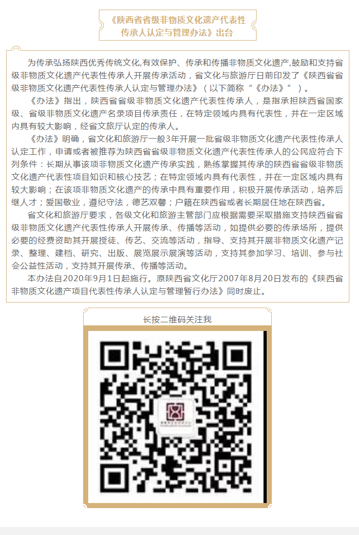 《陕西省省级非物质文化遗产代表性传承人认定与管理办法》出台