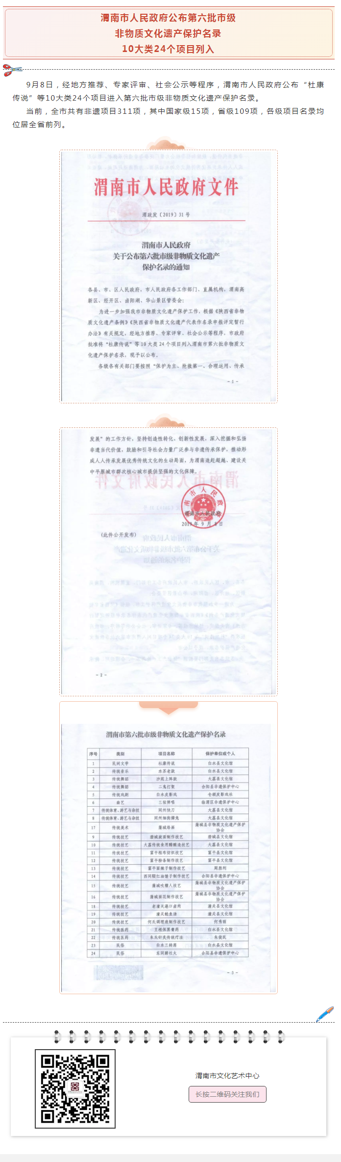 渭南市人民政府公布第六批市级非物质文化遗产保护名录10大类24个项目列入