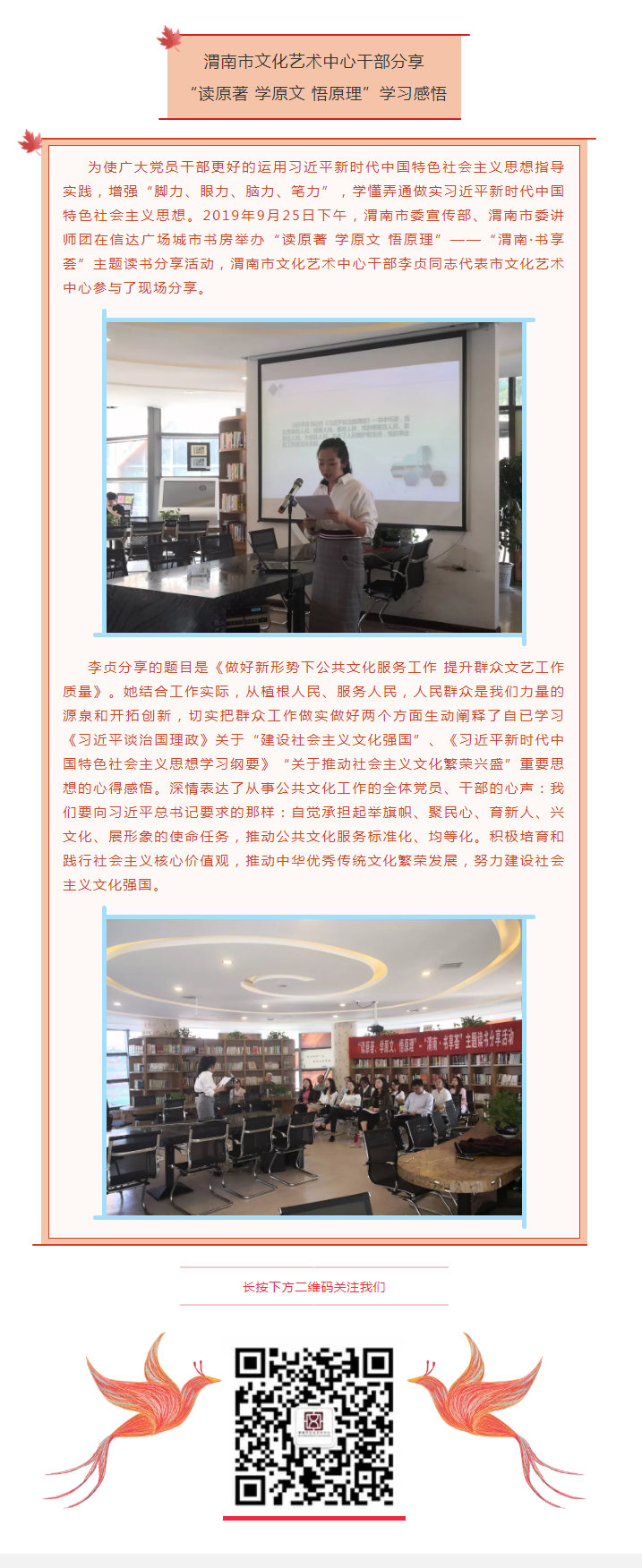 渭南市文化艺术中心干部分享 “读原著 学原文 悟原理”学习感悟