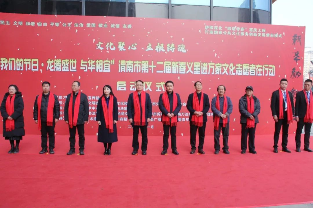 1月30日下午,“文化聚心 立根铸魂——‘我们的节日·龙腾盛世 与华相宜’渭南市第十二届新春义墨进万家文化志愿者在行动”启动仪式在万达广场举办。