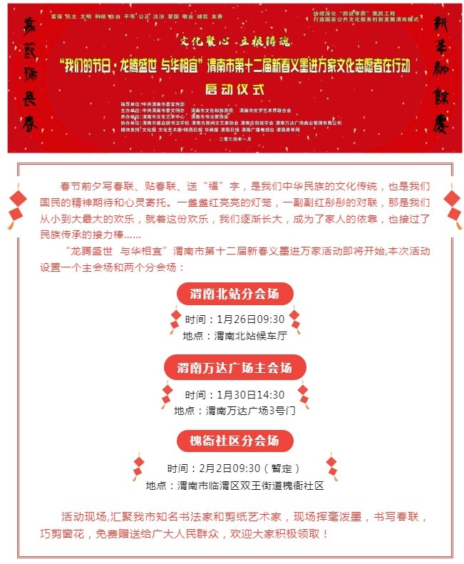 渭南市文化艺术中心春联义写早知道——“龙腾盛世 与华相宜”渭南市第十二届新春义墨进万家活动预告