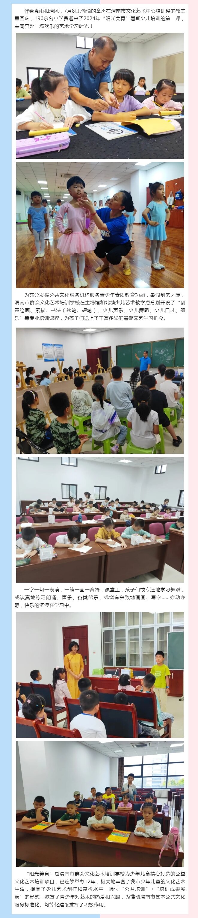 阳光美育 艺路童行——2024年少儿暑期培训精彩开课