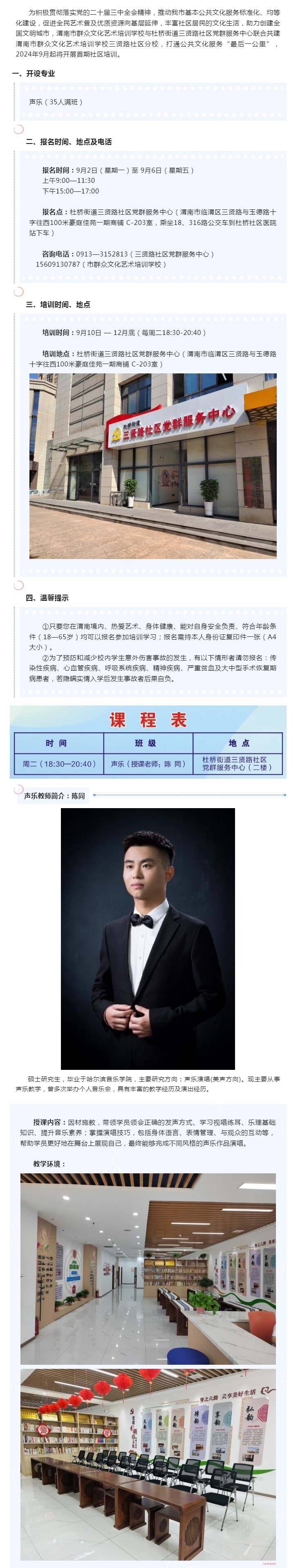渭南市群众文化艺术培训学校杜桥街道三贤路社区分校2024年秋季培训招生简章
