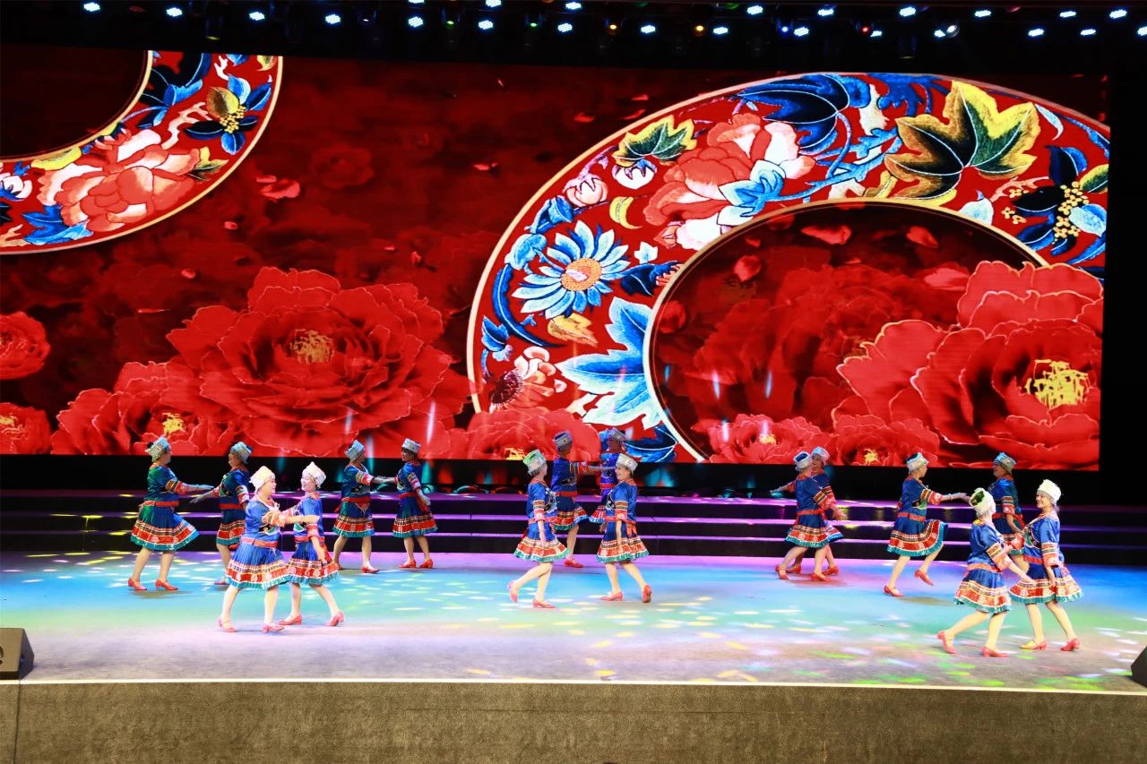 舞蹈《幸福摆手舞》拉开演出的序幕,精致的服装、明快欢乐的节奏和热情洋溢的表演瞬间让现场观众鼓掌喝彩;黄河老腔《黄河谣》古拙浑厚的唱腔,呕歌了黄土地人民生生不息的、勤劳奋斗的不竭精神;情景剧《暴富陷阱》真情演绎了社区工作者和公安民警及时阻止群众受到电信诈骗侵害的情景,向观众宣传了一波防范电信诈骗知识;合唱《关中新歌》以华阴老腔的音乐素材为基础,加入了诙谐幽默的关中民谣,时而热烈豪迈,时而婉转动人,其中的方言片段赋于作品独特的地方文化特点,表现了关中人豪迈的性格和对生活的热爱;舞蹈《华山之上》、《江山》、《草编情》、《老百姓的菜篮子》展现了一幅幅美好生活图景;眉户戏《迟开的玫瑰》、《大家喜欢》让戏迷观众如痴如醉,混声小合唱《经典红歌联唱》为大家奉上耳熟能详的经典老歌:舞蹈走秀《我爱你中国》表达了浓浓的爱国之情。