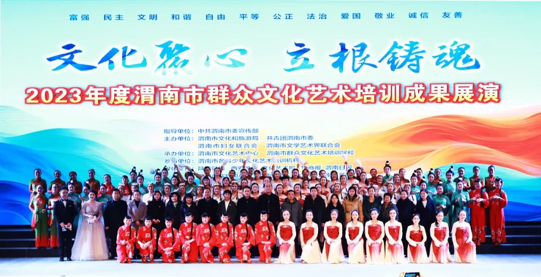 为认真贯彻落实习近平新时代中国特色社会主义思想,坚持以文铸魂、以文传脉、以文惠民、以文兴业、以文立标,弘扬社会主义先进文化、传承优秀传统文化,积极推进我市全民艺术普及工作,检阅培训学校教学服务水平和学员年度的学习成果,12月29日,渭南市文化艺术中心成功举办“文化聚心 立根铸魂”2023年度渭南市群众文化艺术培训成果展演。
