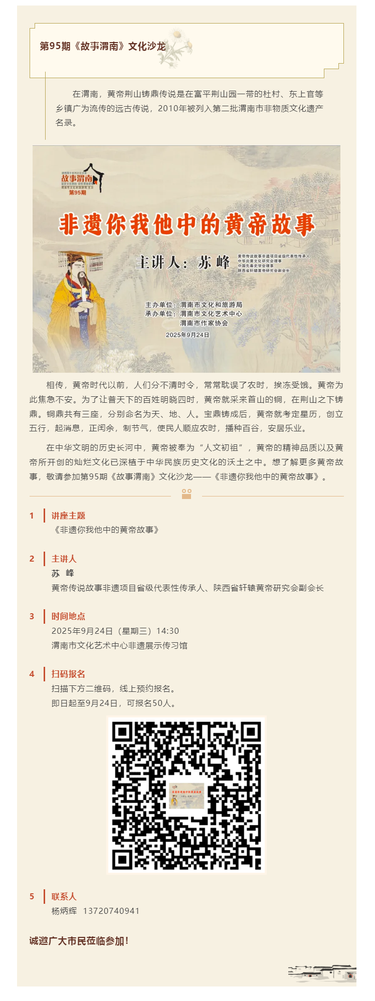 【活动预告】第95期《故事渭南》文化沙龙——《非遗你我他中的黄帝故事》