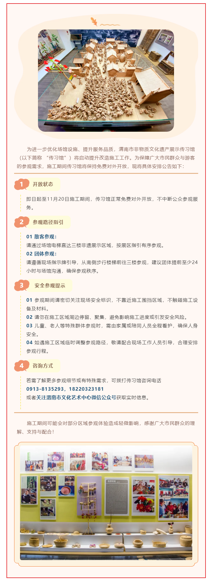 渭南市非遗展示传习馆关于提升改造施工期间免费开放有关工作的公告