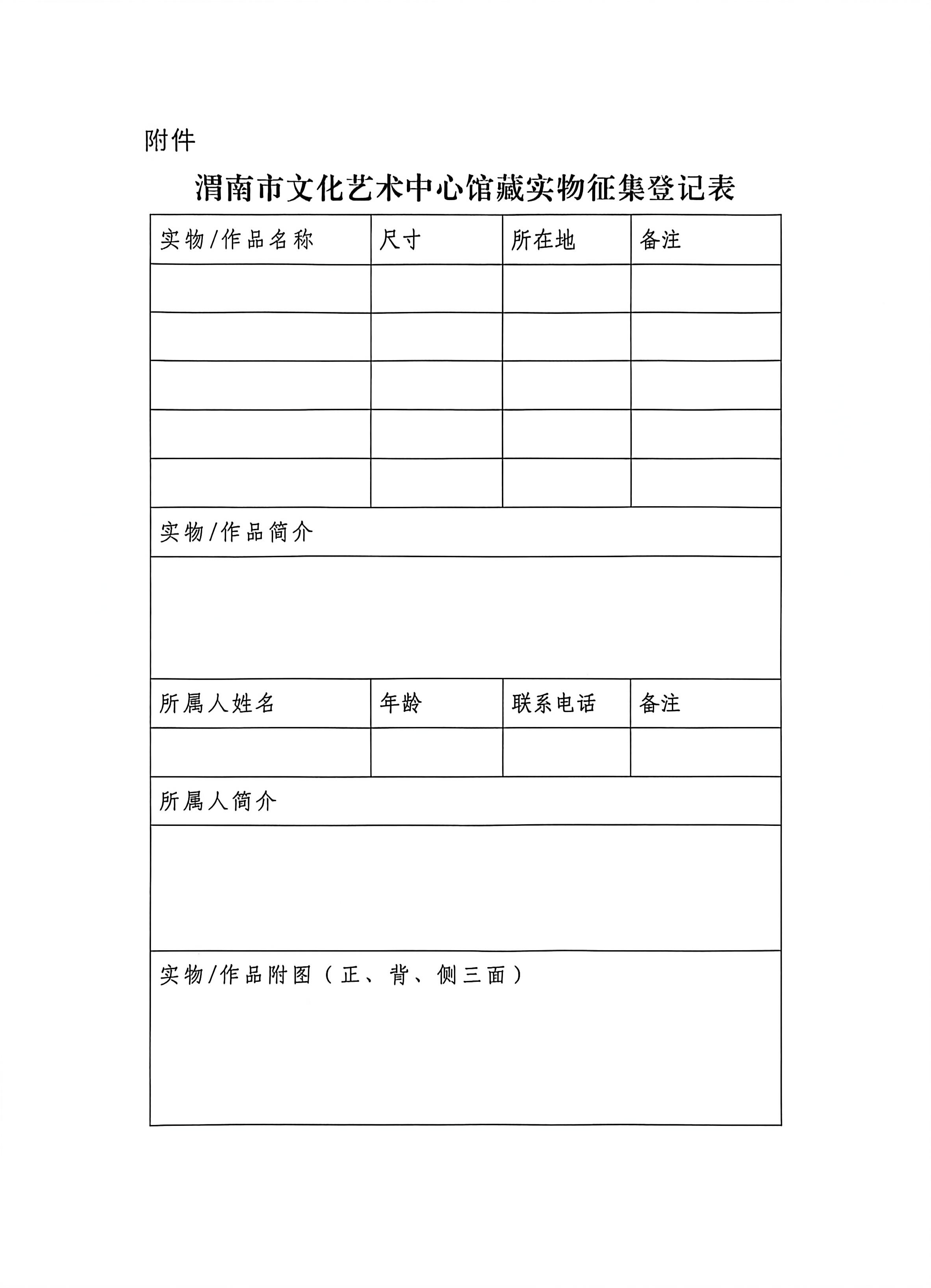 渭南市文化艺术中心馆藏实物征集启事