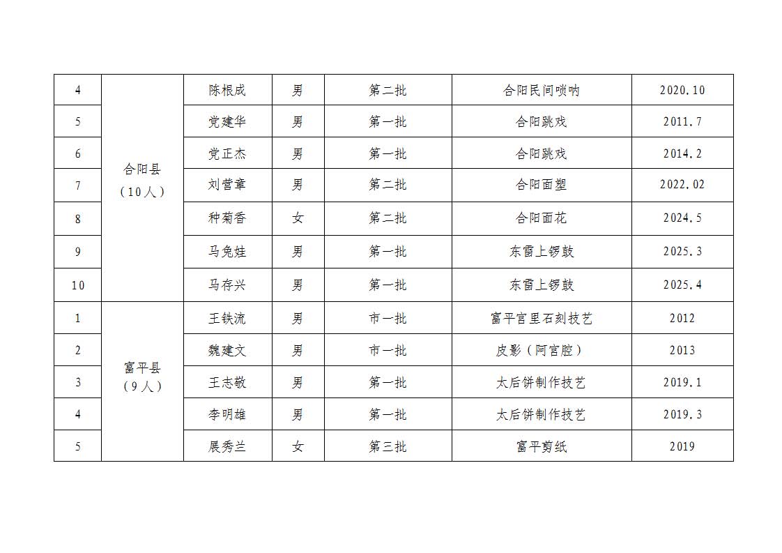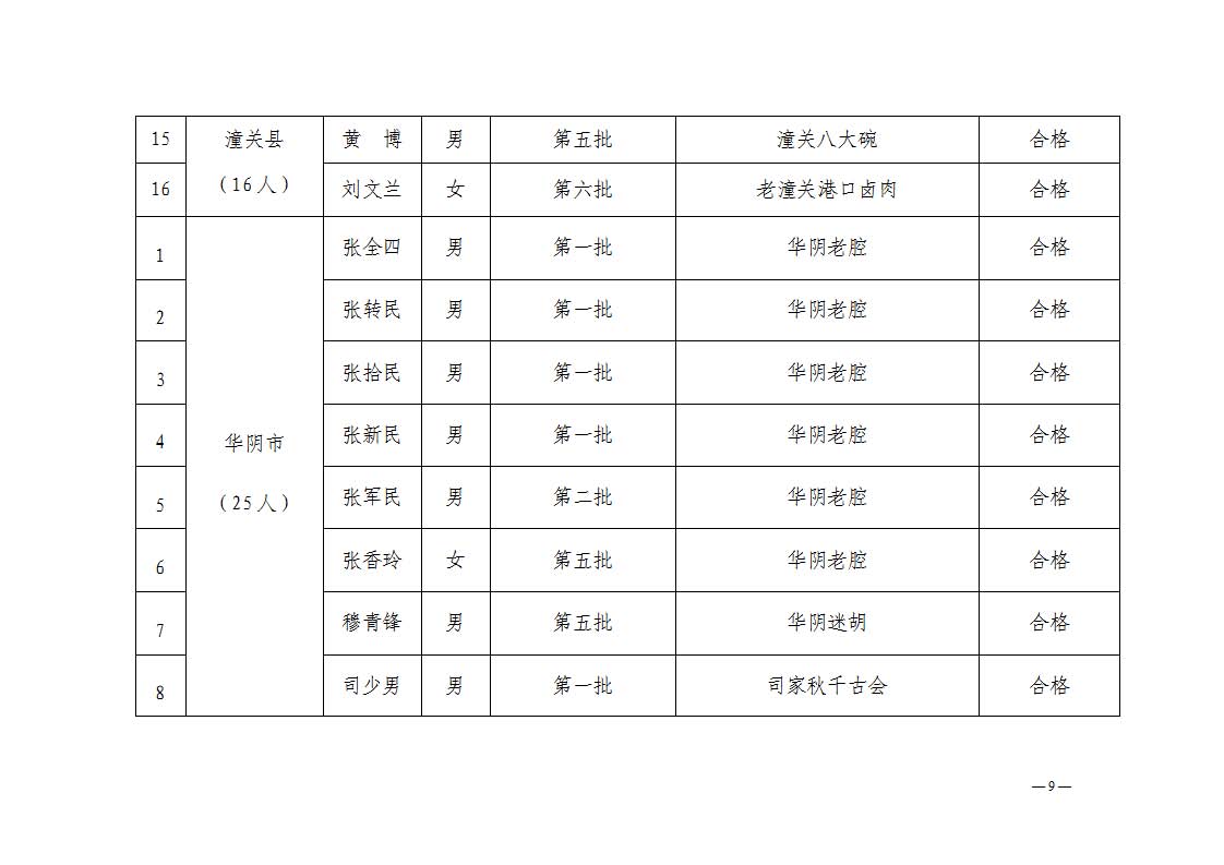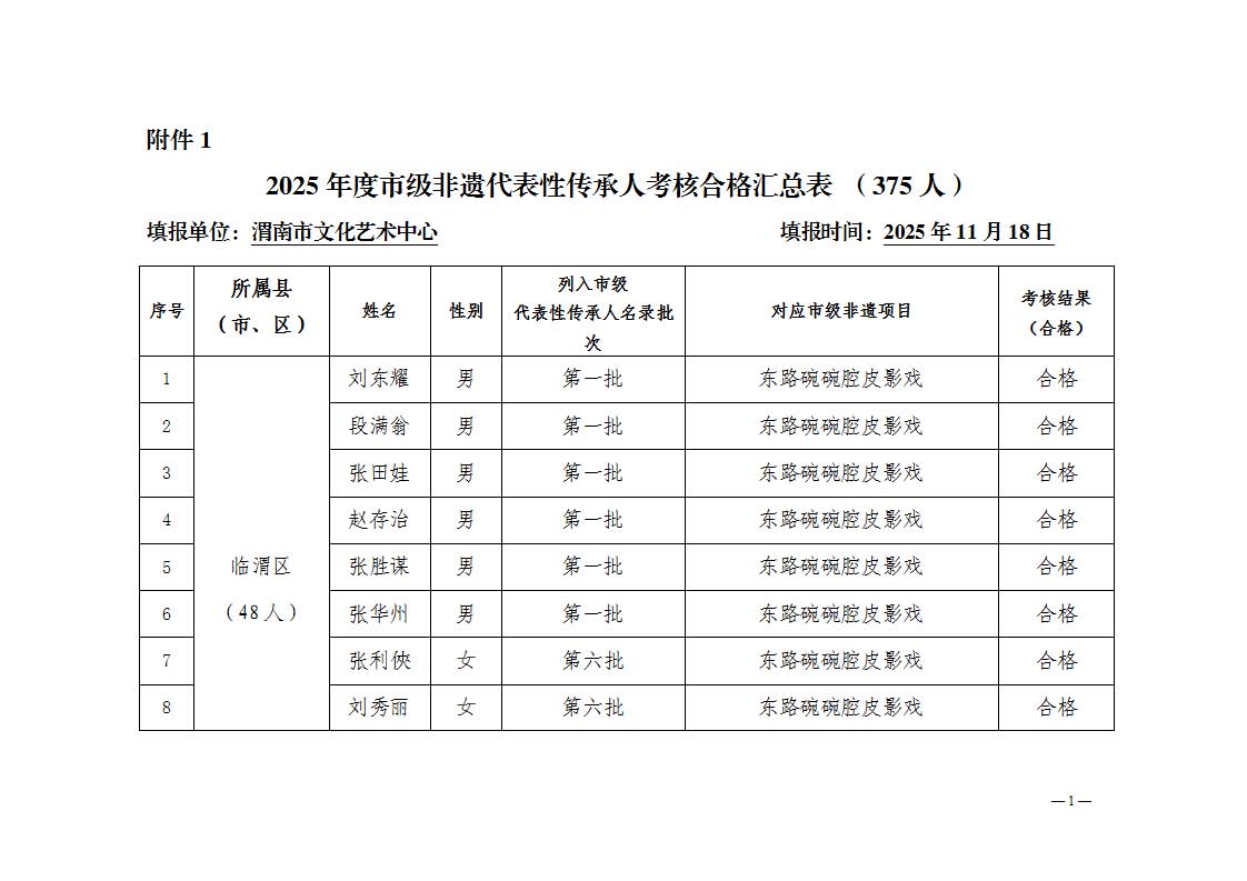 1.渭南市2025年度代表性传承人考核合格汇总表