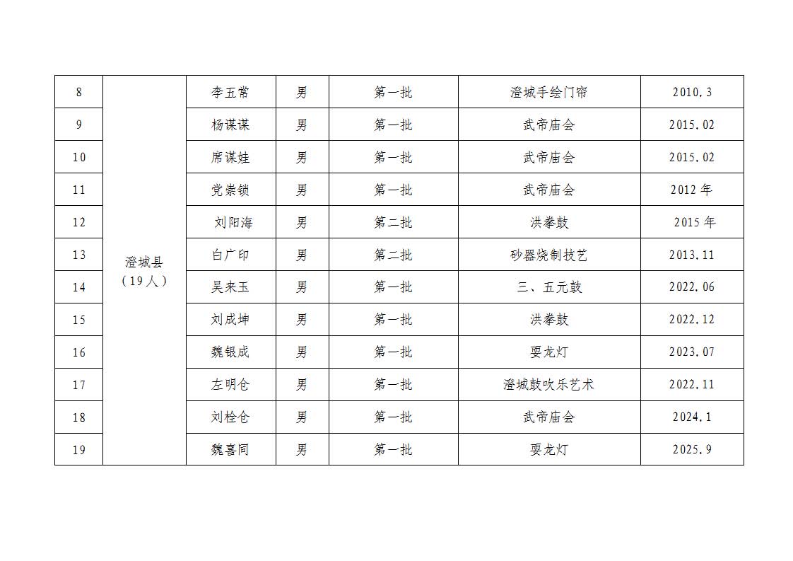 根据《关于开展2025年市级非物质文化遗产项目代表性传承人年度考核的通知》(渭文中心发[44]号)要求,渭南市文化艺术中心于2025年9月启动市级传承人年度考核工作,经资料审核、会议研究,已于11月完成全部考核流程,现将结果公示如下: