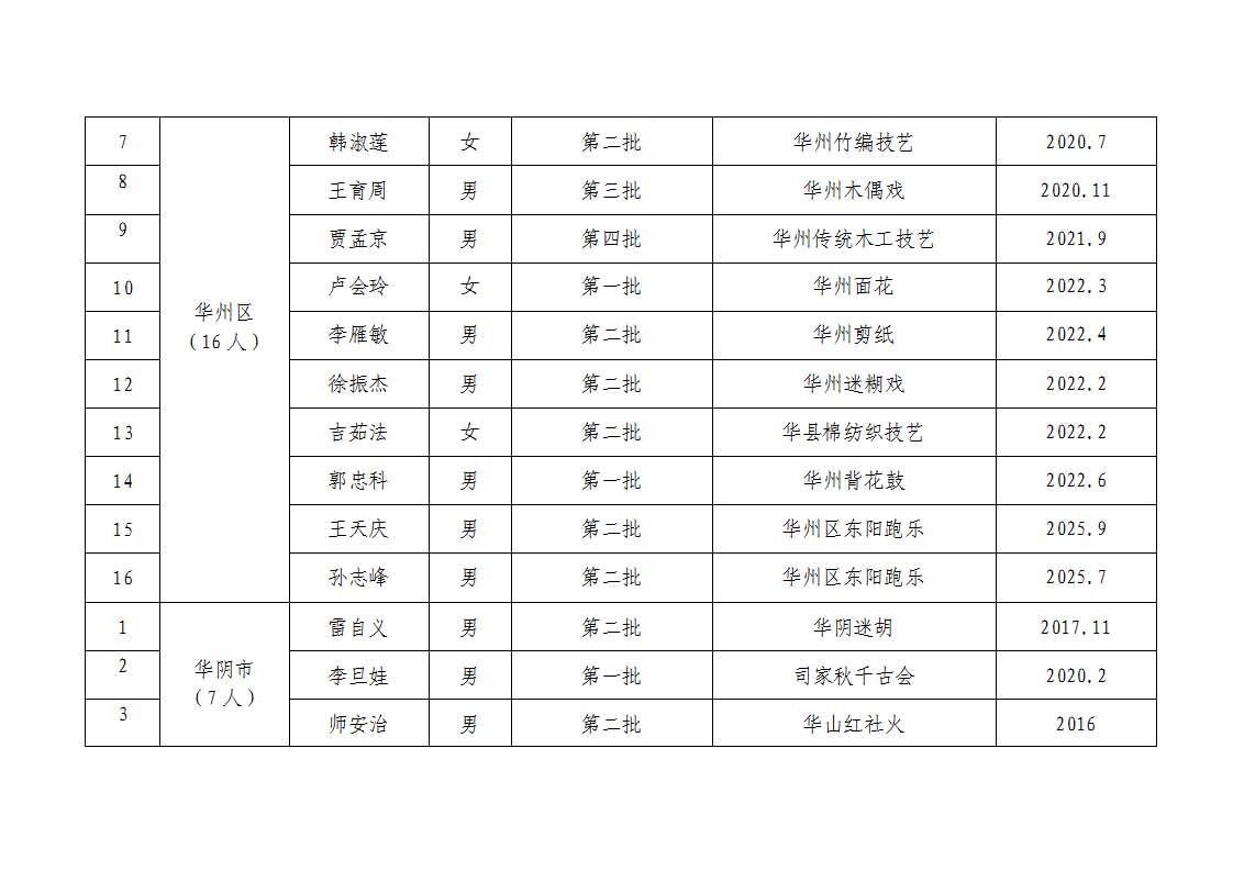 3.渭南市2025年度代表性传承人去世汇总表