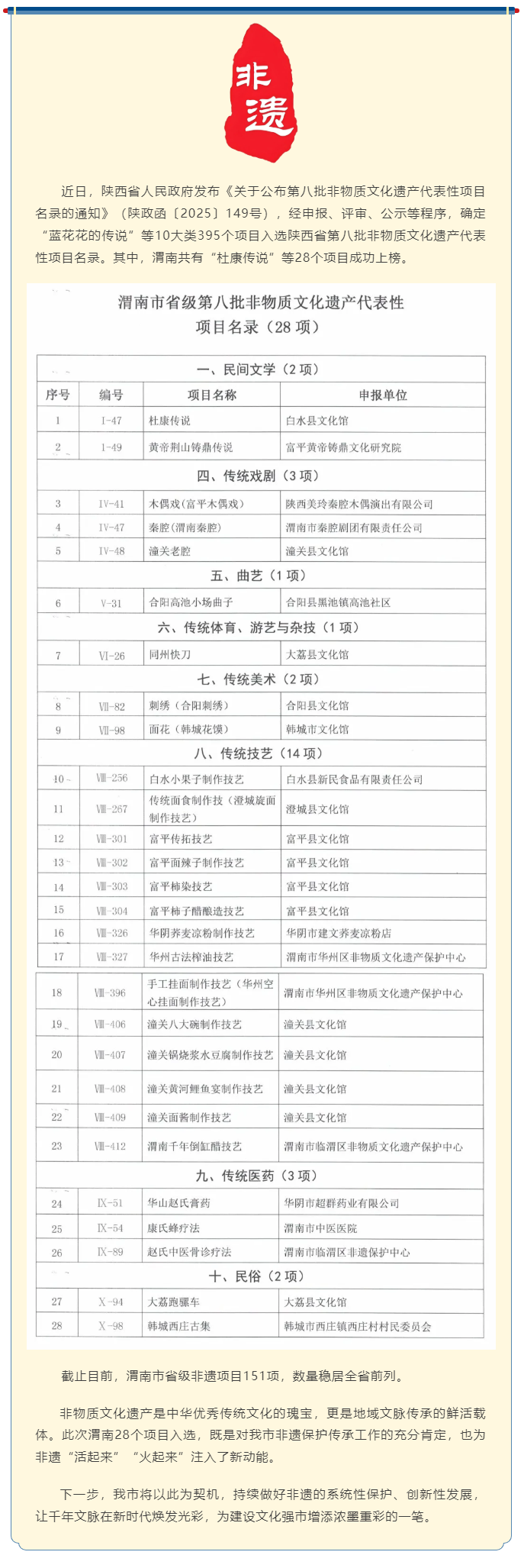 【喜报】渭南28项入选陕西省第八批非遗名录