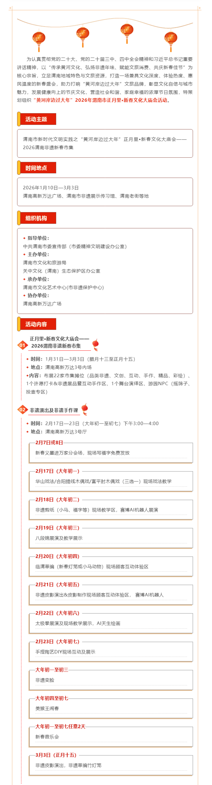 【活动预告】渭南市新时代文明实践之 “黄河岸边过大年” 正月里·新春文化大庙会——2026渭南非遗新春市集